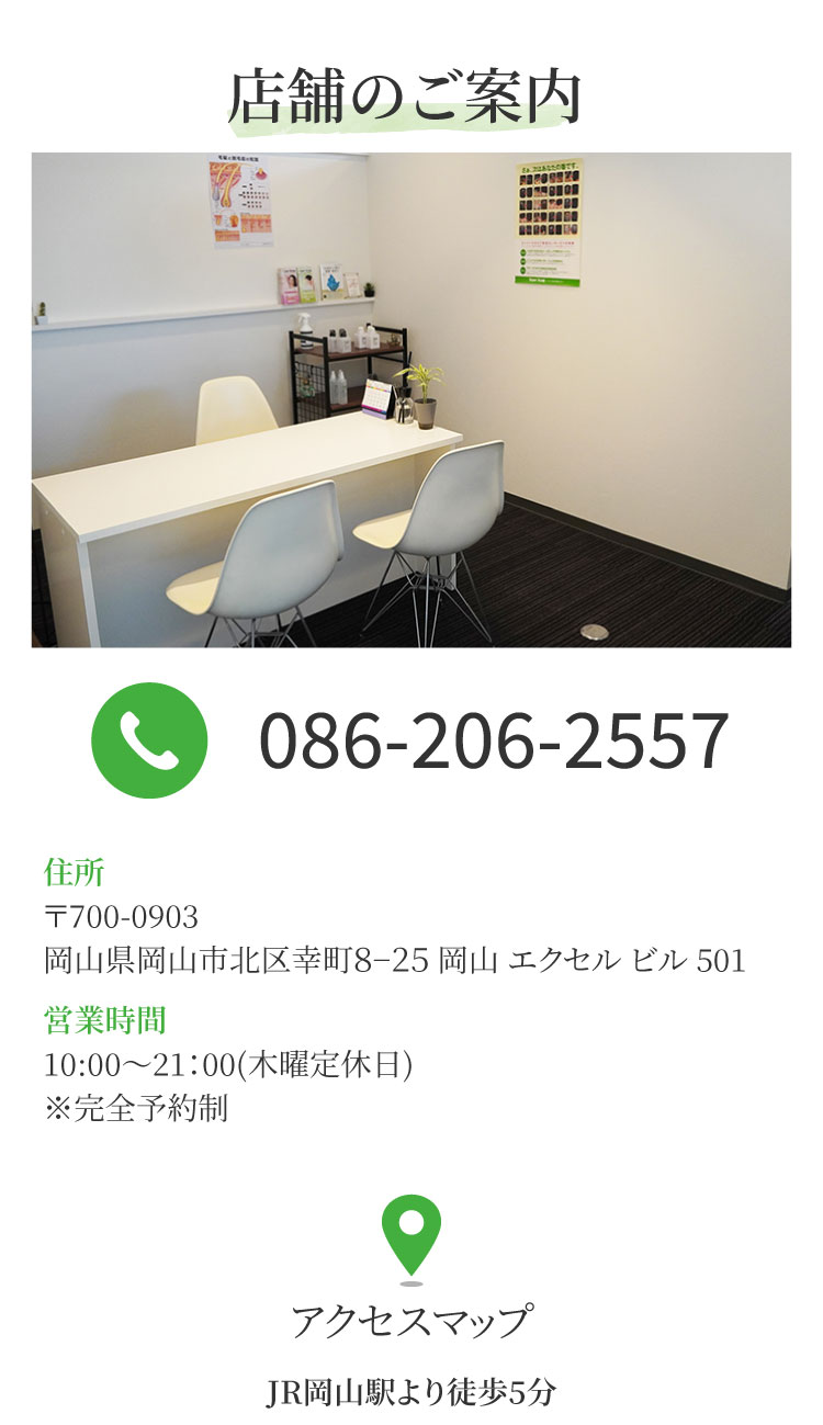 予約フォーム ※*は必須項目です。 お名前 * ふりがな * 性別 * 女性男性 年代 * 10代20代30代40代50代60代以上 メールアドレス * 電話番号 * ご希望の店舗* 岡山駅前店福山店 ご来店の回数 * 初めての方2回目以降のご来店 ご希望の日付 * ご希望の時間 * —以下から選択してください—10:00~11:00~12:00~13:00~14:00~15:00~16:00~17:00~18:00~19:00~20:00~ お問い合わせの種類 * 発毛体験ご予約無料カウンセリングご質問その他 お問い合わせ内容 * Δ